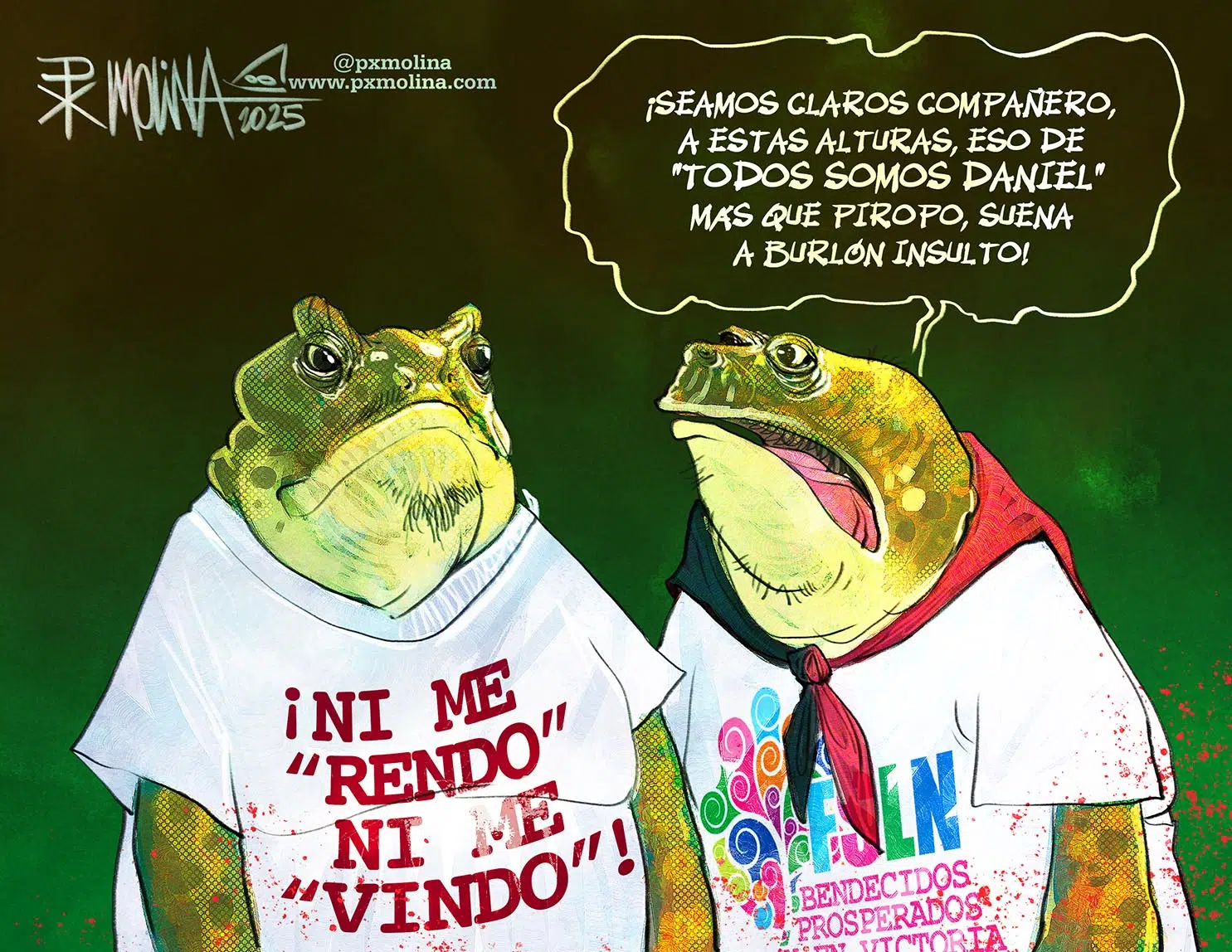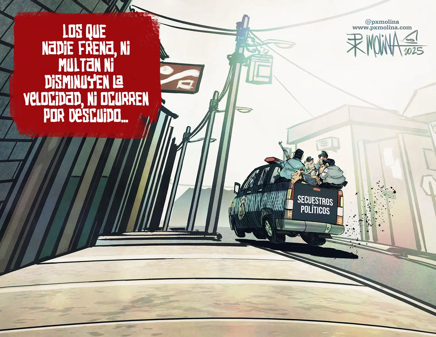 Caricaturas Galería de Trazos Críticos «El humor que no necesita palabras. Una imagen vale más que mil rimas.» Los infractores que no se detienen A estos según PxMolina no les vale ninguna ley Burlón Insulto Orteguista PxMolina trae un mordaz comentario sobre el senil mensaje de Ortega en el aniversario del FSLN