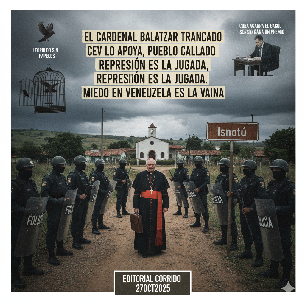 📻 Editorial Corrido – 2 de noviembre de 2025 Por La Cotorra Cancerbera, que no se calla ni bajo el agua. La prensa está que se muere, su libertad, ¡ay, caramba!, en Venezuela no escampa, el gobierno la hiere. En Maracay se detiene a quienes alzan la voz, sin rastro, ¡válgame Dios!, periodistas en Tocorón, […]