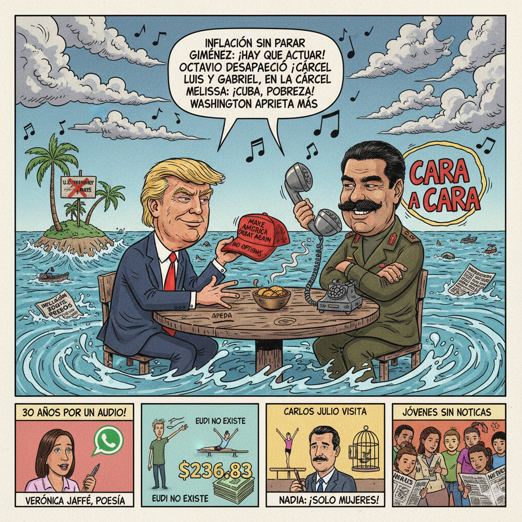 📻 Editorial Corrido – 18 de noviembre de 2025 Por La Cotorra Cancerbera, que no se calla ni bajo el agua. Trump suelta la lengua, ¡qué vaina!, con Maduro quiere un tete a tete, pa’ «relajar» la tensión, ¿será que busca un guiso o una patraña? Maduro no se arruga, ni maña, dice que le